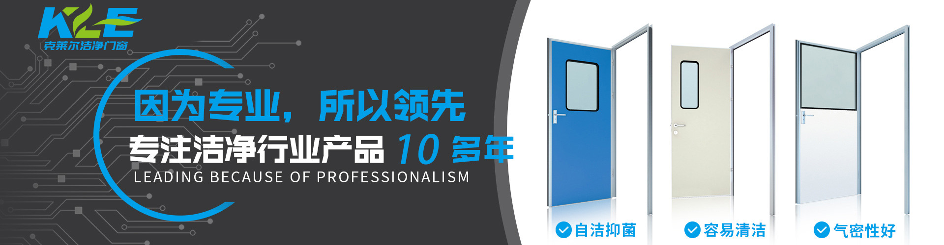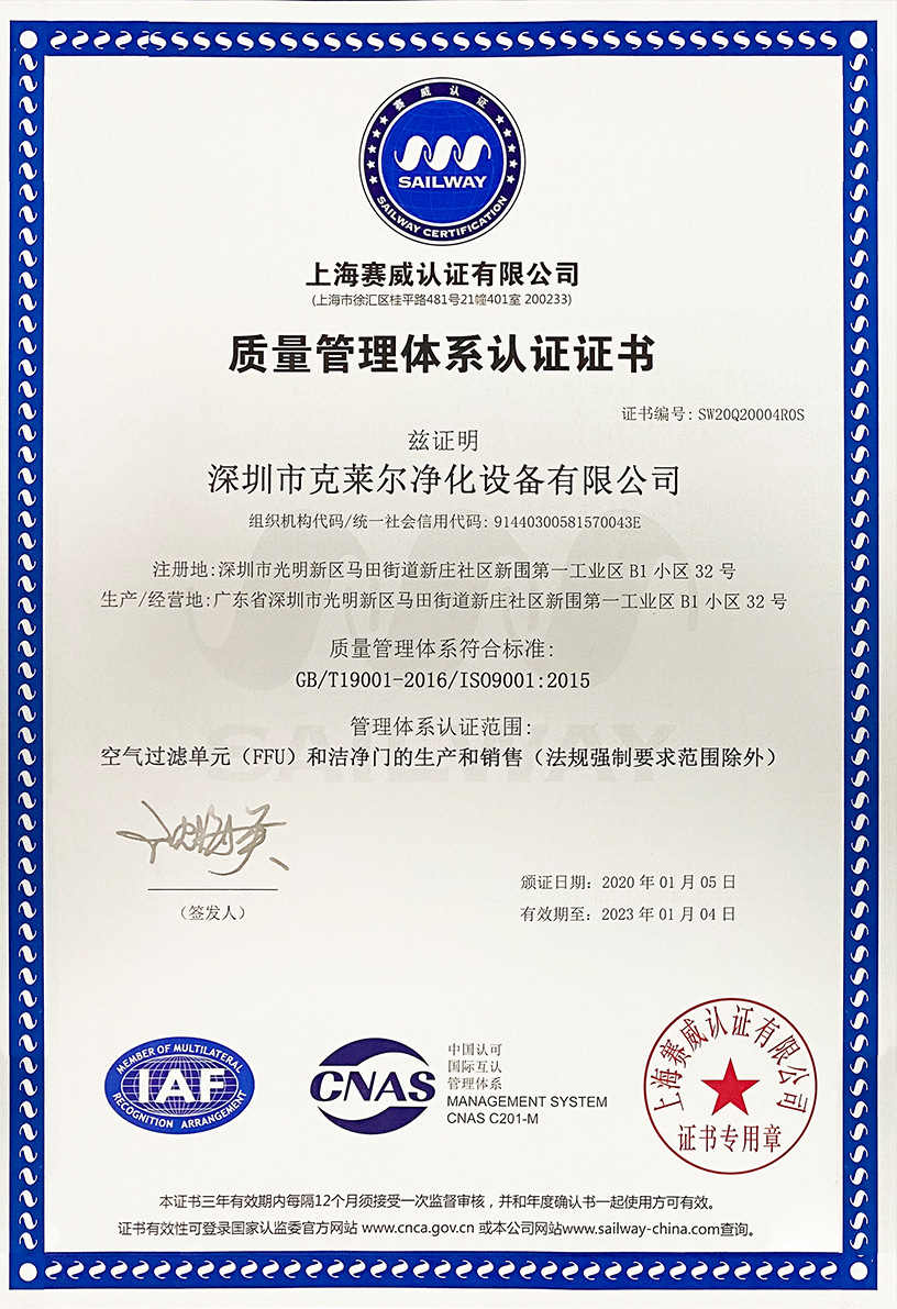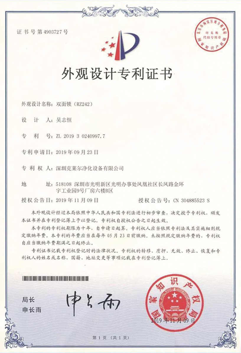 廣東克萊爾潔凈科技有限公司是一家集生產(chǎn)、研發(fā)、銷售于一體的專業(yè)潔凈門(mén)窗生產(chǎn)企業(yè)。 公司擁有現(xiàn)代化標(biāo)準(zhǔn)廠房10000多平方米,配備全自動(dòng)靜電噴涂流水線及 3000平以上萬(wàn)級(jí)無(wú)塵生產(chǎn)車間,專供潔凈門(mén)及中空窗的生產(chǎn)裝配等。公司不斷引進(jìn)一流生產(chǎn)設(shè)備(如瑞士百超激光切割機(jī)、日本AMADA數(shù)控折彎?rùn)C(jī)、超聲玻璃清洗機(jī)等),采用國(guó)際最先進(jìn)的技術(shù)及裝備確保產(chǎn)品品質(zhì),是華南區(qū)域最具規(guī)模的專業(yè)潔凈鋼制門(mén)及中空潔凈窗生產(chǎn)廠家。公司在同行業(yè)率先通過(guò)ISO9001質(zhì)量體系認(rèn)證,并先后獲得多項(xiàng)專利認(rèn)證及榮譽(yù)證書(shū)。 KLE purification equipment Co., Ltd. is a set of production, research and development, sales in one of the professional clean doors and windows production enterprises.The company has a modern standard workshop of more than 10000 square meters, equipped with automatic electrostatic spraying line and more than 30 million level dust-free production workshop, specially for the production and assembly of clean doors and hollow windows. The company constantly introduces first-class production equipment (such as Swiss Baichao laser cutting machine, Japanese AMADA CNC bending machine...